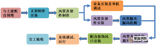 ①空調(diào)風系統(tǒng)施工工藝流程