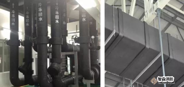 風管穿越防火墻應(yīng)設(shè)有鋼板厚度1.6mm及以上的套管。套管內(nèi)部應(yīng)用玻璃棉等不燃材料封堵,外面用防火泥抹面。