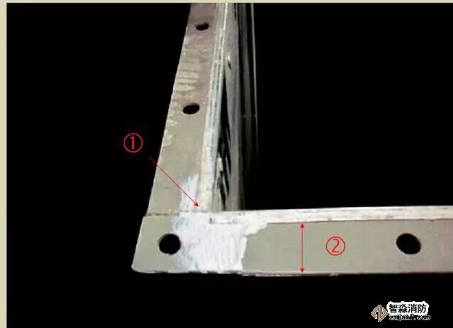 ② 風管法蘭鐵皮翻邊量大于6mm,小于9mm;翻邊緊貼法蘭,平整、無翹起,風管四角鐵皮重疊處鏟平無豁口,打膠嚴密。