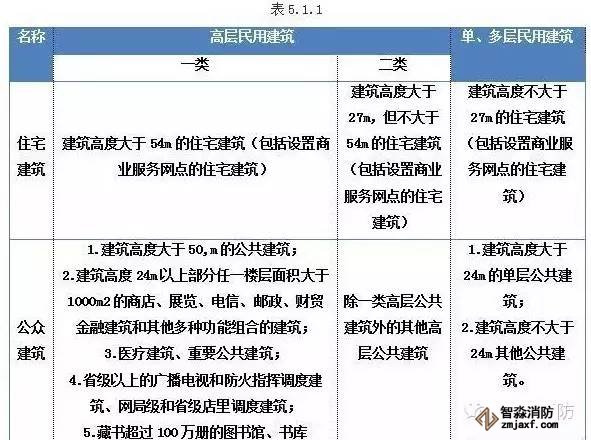 5.1.1民用建筑根據其建筑高度和層數可分為單、多民用建筑和高層民用建筑。高層民用建筑根據其建筑高度、使用功能和樓層的建筑面積可分為一類和二類。民用建筑的分類應符合表5.1.1的規定。