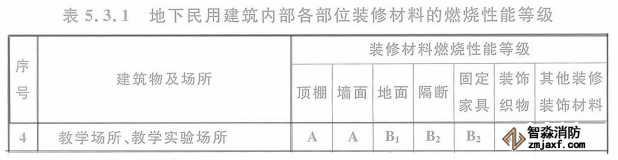 六、培訓班設置在地下民用建筑時,內部各部位裝修材料的燃燒性能等級,不應低于《建筑內部裝修設計防火規范》5.3.1的規定,參照“教學場所”執行。