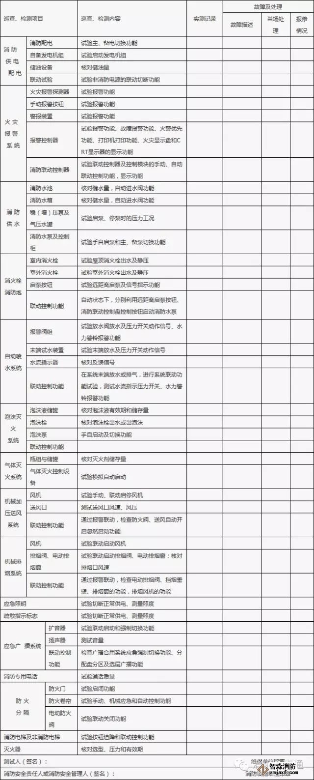 3、發(fā)現(xiàn)的問題或存在故障在“實(shí)測(cè)記錄”欄中填寫,并及時(shí)處置;當(dāng)場(chǎng)不能處置的要填報(bào)《建筑消防設(shè)施故障處理記錄》。
