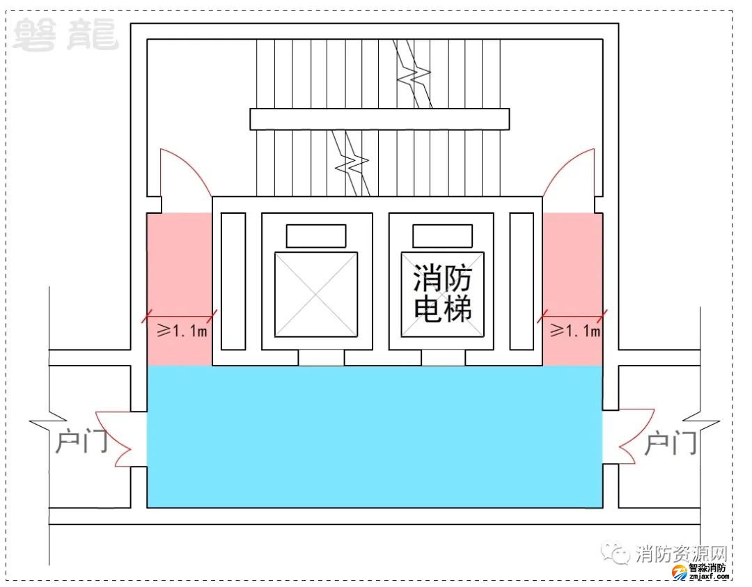 二、消防電梯前室的面積和尺寸,應是與消防電梯門正對的規則區域: