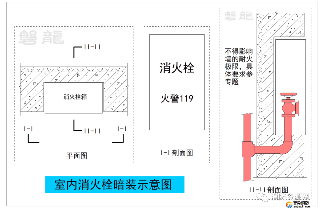 1、不可回避的消火栓等,盡量暗裝布置,或設置在不影響疏散和救援操作的位置。