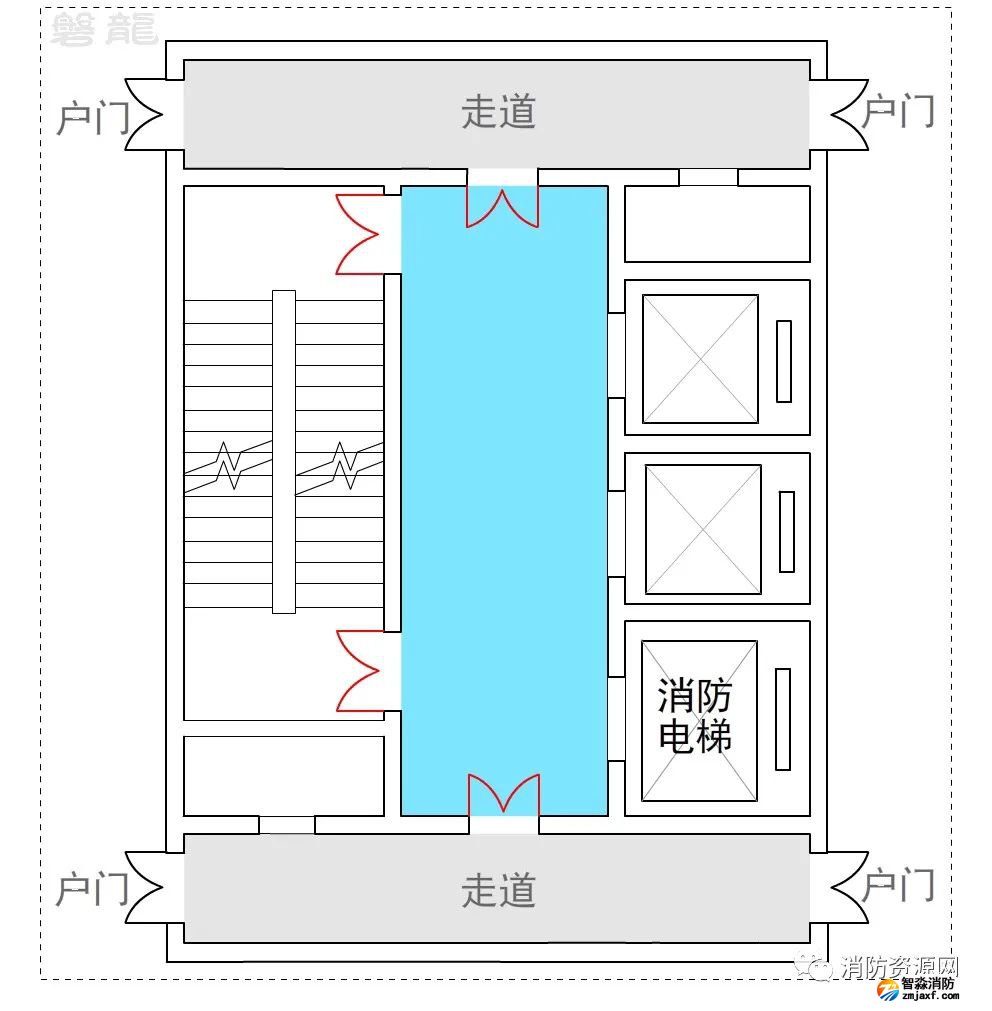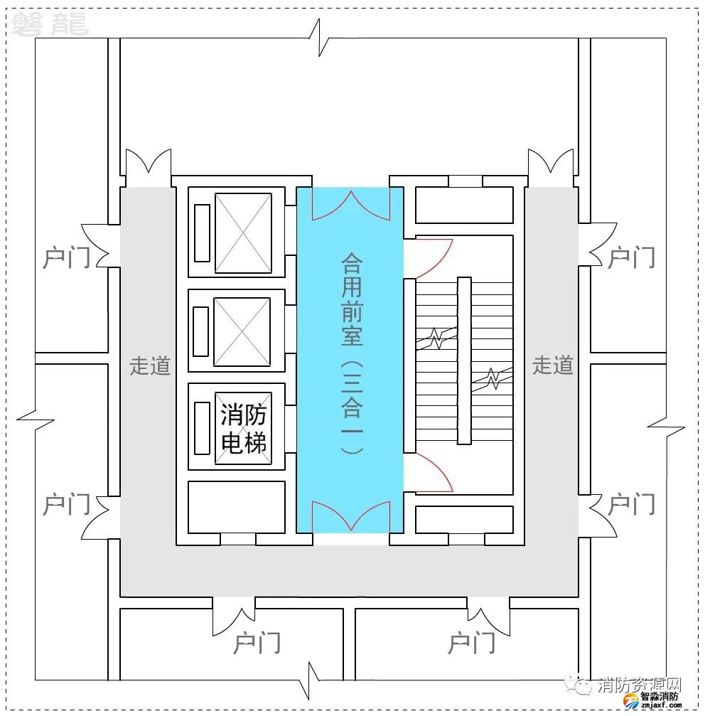 三、公共建筑人員較為繁雜,穿套前室會直接影響消防電梯前室的封閉性能,且人員不一定熟悉現場環境,封閉的消防電梯前室門可能導致疏散盲區,因此,公共建筑不應許可穿套消防電梯前室。