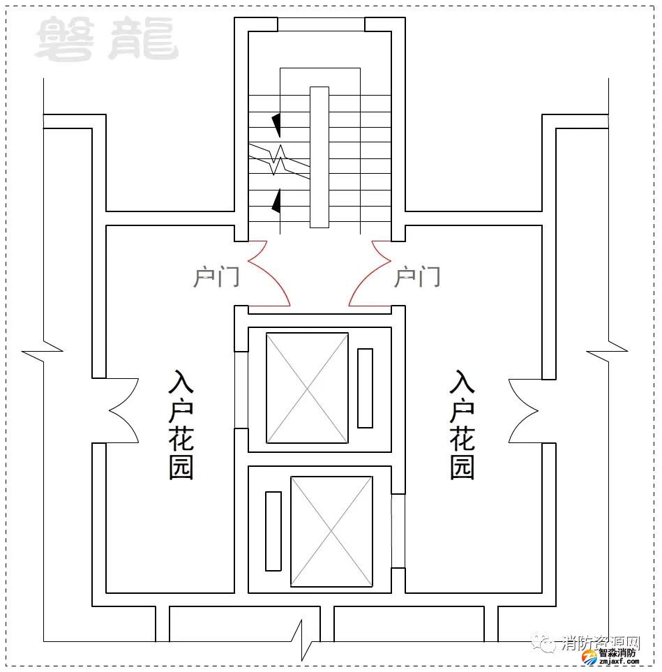 2、許可示例(示例27):本示例中,戶門直接對消防電梯前室開放,也通常認為可行:(有爭議)