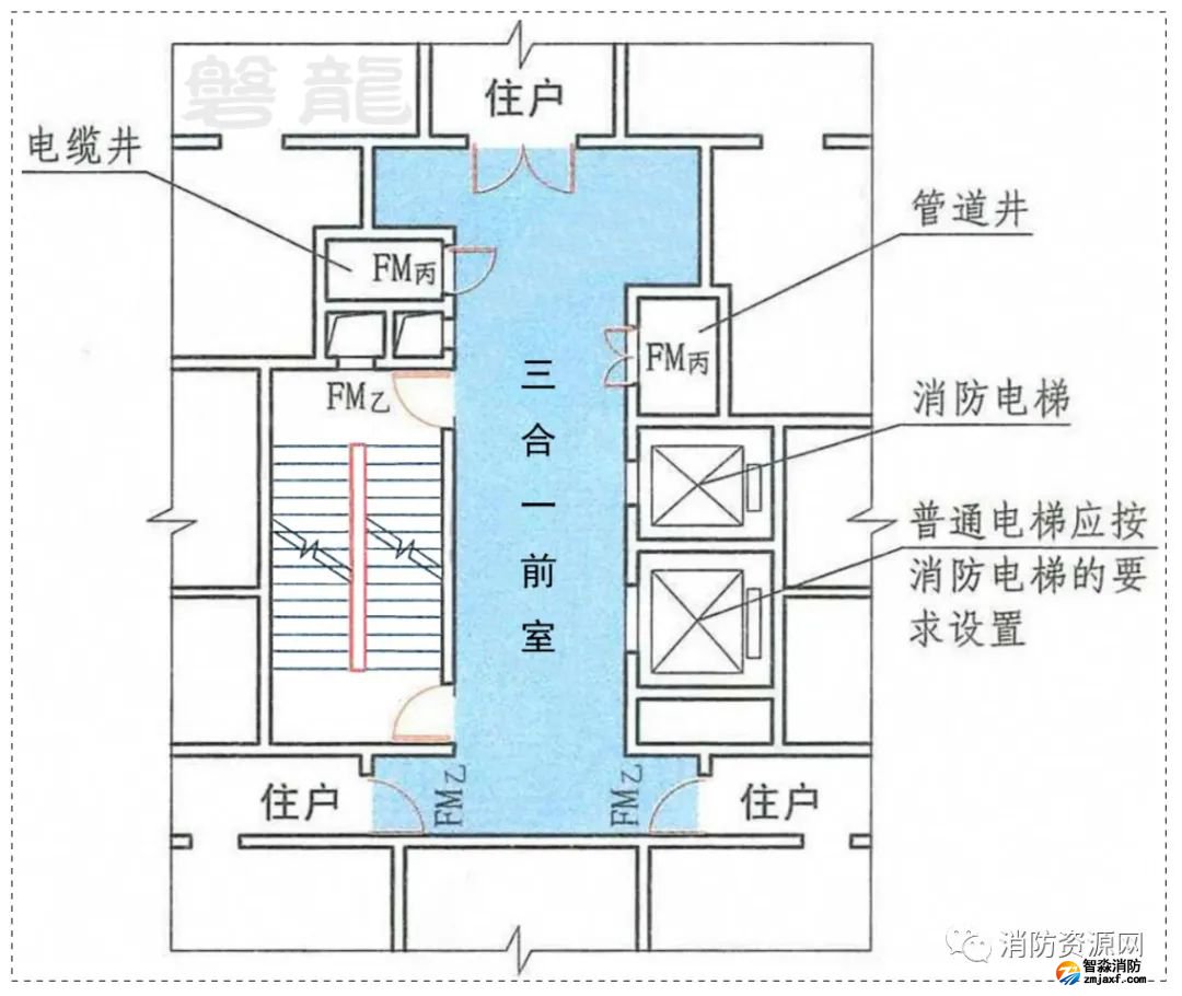 一、住宅建筑前室允許設置管井(電井)檢查門,應僅限于戶門直接開向三合一前室和單一安全出口的合用前室,除此以外,管井(電井)檢查門不應設置在住宅建筑的前室 。