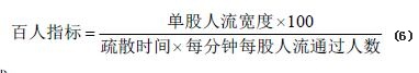 據此,按照疏散凈寬度指標公式計算出一、二級耐火等級建筑的觀眾廳中每100 人所需疏散寬度為:。