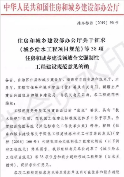 2月2日,住建部辦公廳發(fā)文。征求住建領域38部全文強制性工程建設規(guī)范意見。其中,《建筑防火通用規(guī)范》全文強制性規(guī)范在征求意見之列。