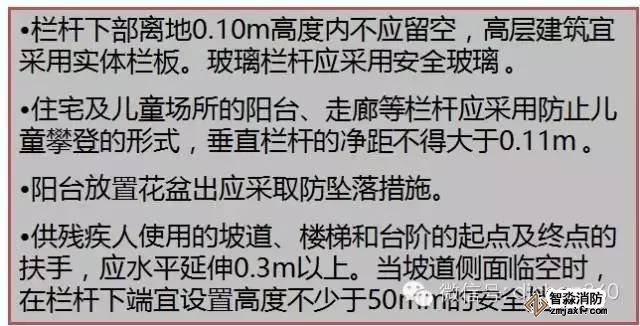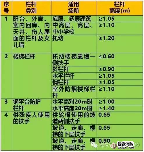 ❷間作安全防護(hù)欄桿時(shí),其高度從露面算起應(yīng)不低于1.05m(多層)和1.10m(高層)