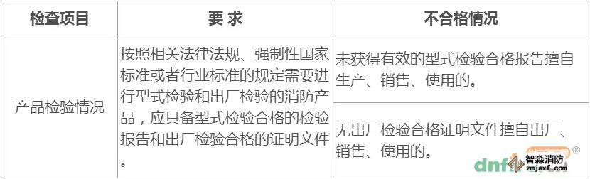 消防產品質量應當按照相關法律法規、強制性國家標準或者行業標準的規定,經型式檢驗和出廠檢驗合格。產品檢驗情況檢查項目、要求及不合格情況見下表。