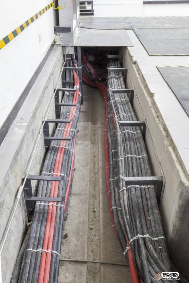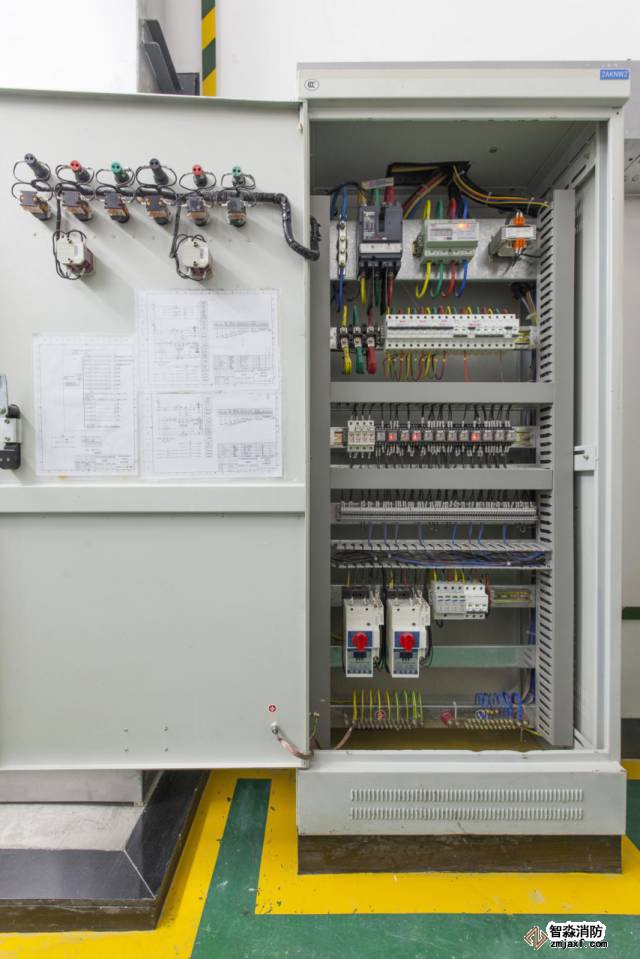 消防泵房?jī)?nèi)配電柜接地可靠,柜內(nèi)線纜排布有序,底部絕緣板絕緣,防火封堵到位。