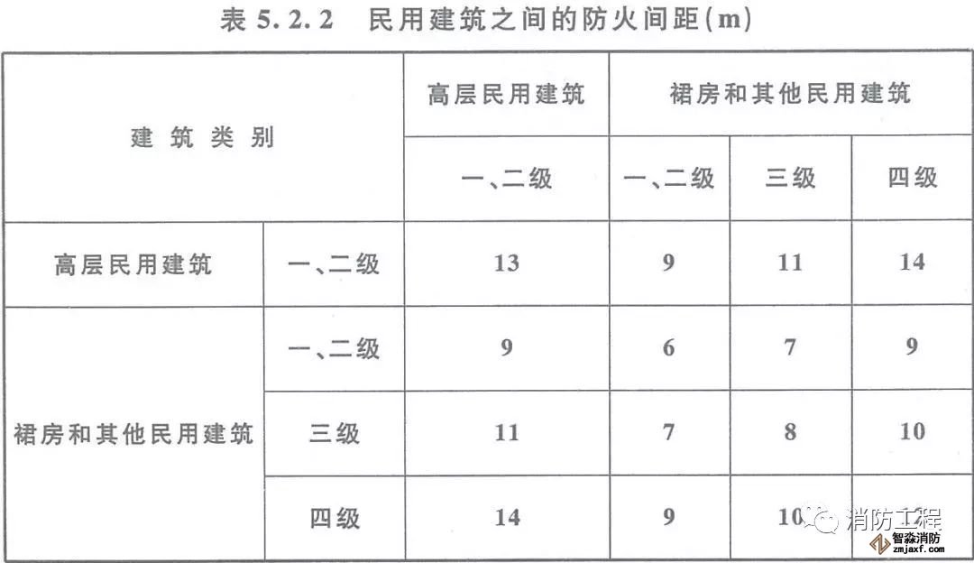 單、多層戊類(lèi)廠房之間及與戊類(lèi)倉(cāng)庫(kù)的防火間距可按本表的規(guī)定減少2m,與民用建筑的防火間距可將戊類(lèi)廠房等同民用建筑按本規(guī)范第5.2.2條的規(guī)定執(zhí)行。