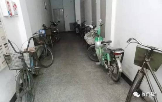 有的居民圖方便,經常將自行車、摩托車或其他物品停放在樓梯出口或低層樓道上。萬一火災發生時,通道的阻塞便影響人員疏散,造成不必要的傷亡。