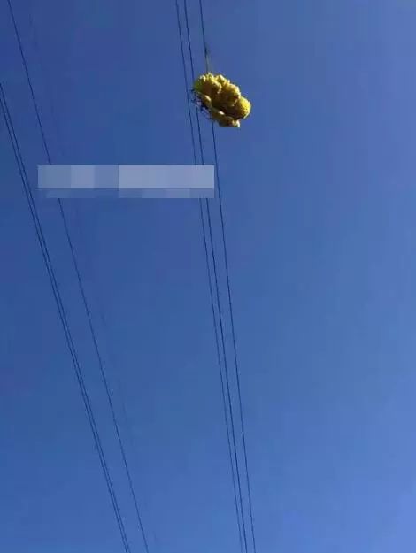 結(jié)果掛在高壓線上面。