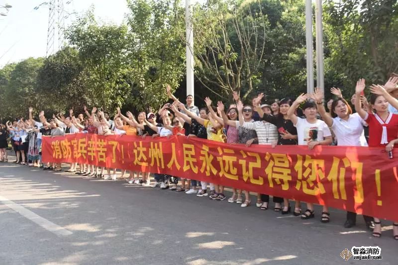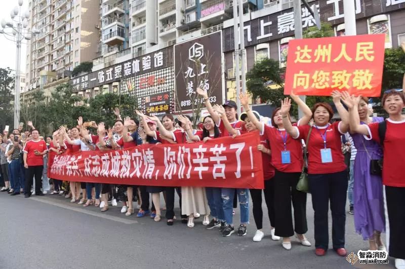 火災(zāi)成功撲救后,在撤離現(xiàn)場(chǎng),達(dá)州市民自發(fā)到街道兩側(cè),拉起“消防官兵,你們辛苦了!”“感激有你們”等大大小小的橫幅,向消防官兵致敬和送行。