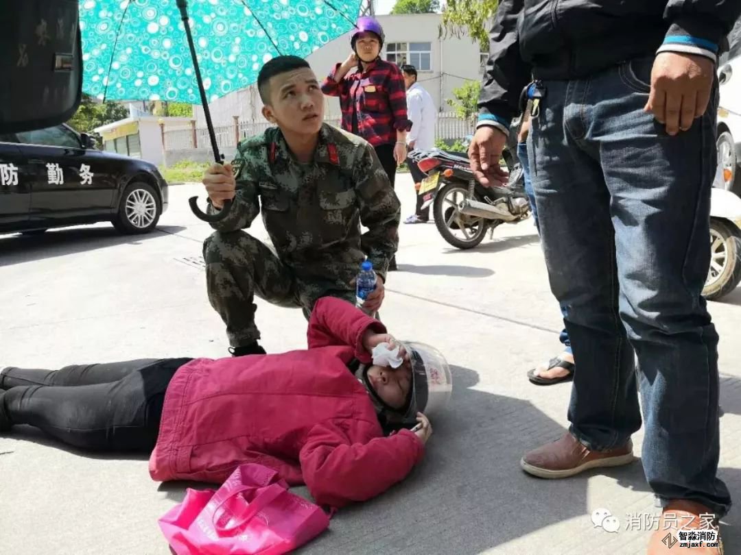 4月8日10時(shí)40分許,福建省漳州市長泰縣順祥路口一面包車與一電動(dòng)車發(fā)生碰撞,導(dǎo)致一騎電動(dòng)車的女子摔倒在地。這一幕,恰好被公差勤務(wù)途中的長泰消防大隊(duì)消防員陳凱和賈專益看到,二人立即上前了解情況。消防員迅速將電動(dòng)車從該女子身上挪開,推到旁邊空地。