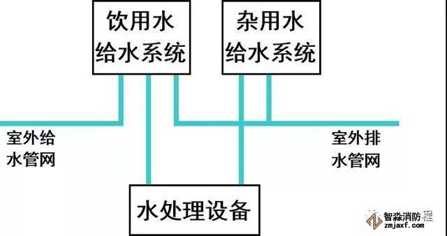 根據不同用途所需的不同水質,設置獨立的給水系統的建筑供水 。