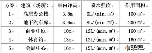 (2) 民用建筑和廠房高大空間場所采用濕式系統設計基本參數