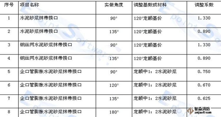 企口管的膨脹水泥砂漿接口和石棉水泥接口適于360度,其他接口均是按管座120度和180度列項(xiàng)的。如管座角度不同,按相應(yīng)材質(zhì)的接口做法,以管道接口調(diào)整表進(jìn)行調(diào)整(見下表):